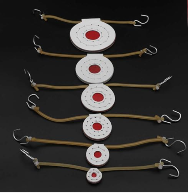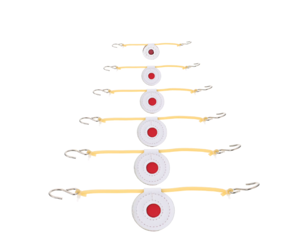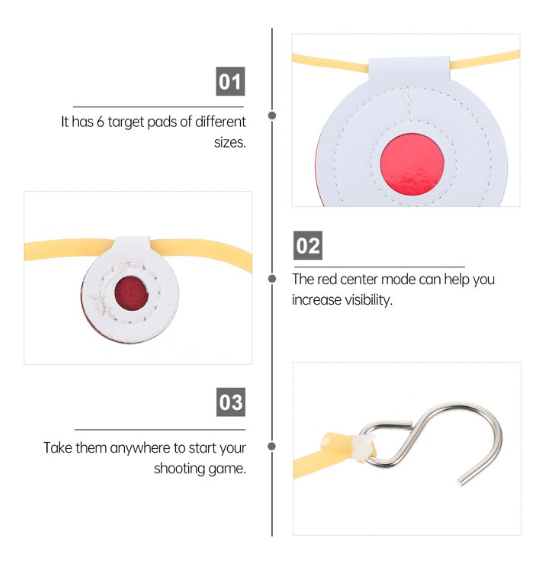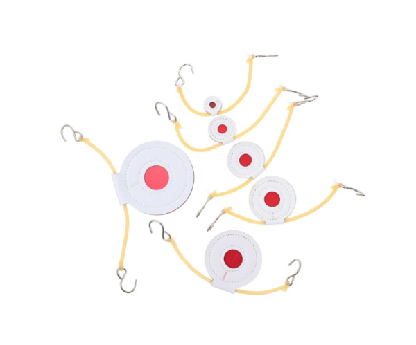 Every target comes equipped with a rubber band and steel hooks on both ends, allowing quick and easy hanging. A reinforced hole at the top ensures secure mounting and reliable performance during repeated use.