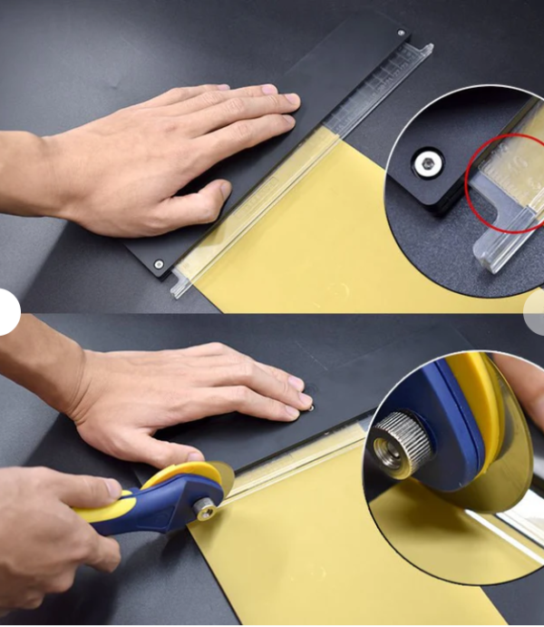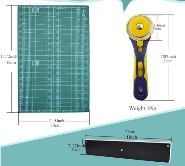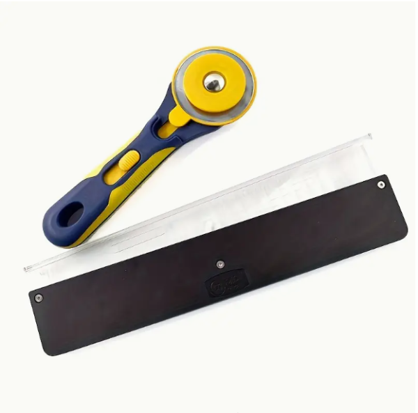 Complete 3-piece cutting set: taper ruler, roll cutter, and self-healing mat